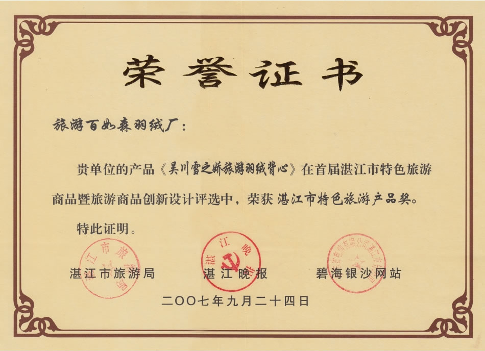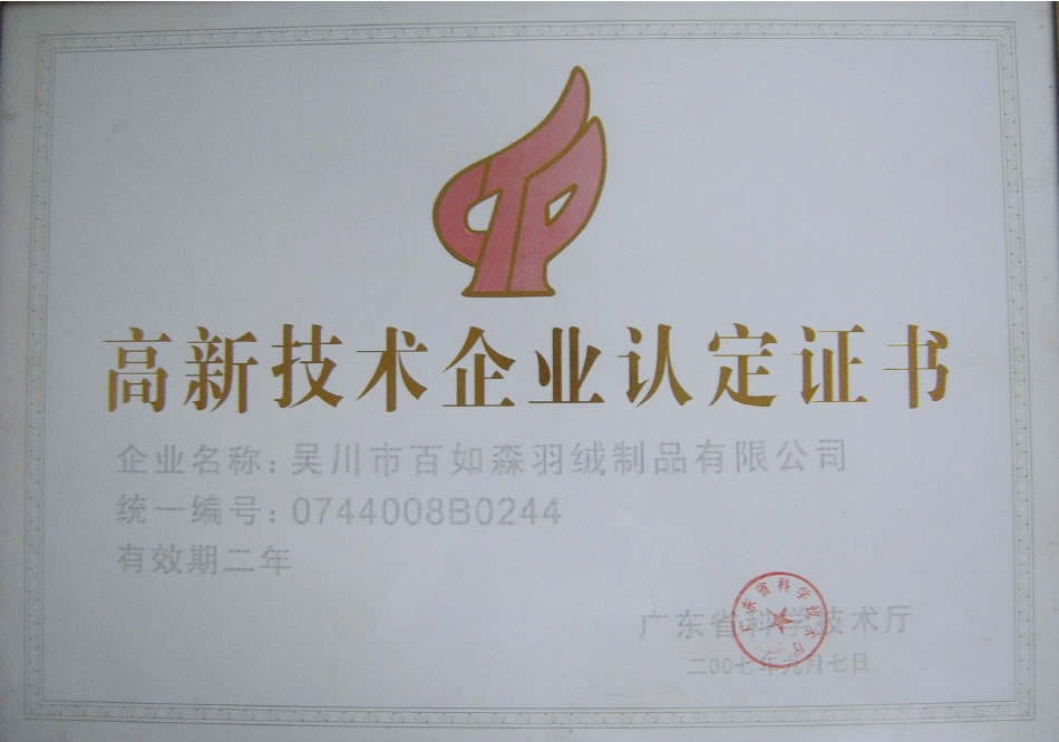 Guangdong bairushen down products Co., Ltd. is located in the famous "down town of China" - Jianjiang Industrial Park, Wuchuan City, Guangdong Province. It is adjacent to the entrance of Jianjiang River to the sea in the East and 325 National Highway in the north. The transportation is in all directions. In the south, it is close to the blue coast and sunny blue sea and silver beach. Founded in 2004, the company covers an area of 15000 square meters and a building area of 23800 square meters. It has more than 360 technical personnel and workers engaged in down processing, and has more than 1000 sets of advanced down and quilt production equipment.