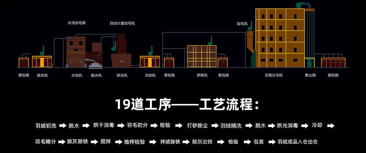 位于中国羽绒之乡,全国羽绒集散地之一,广东省吴川市,厂区占地面积35000平方米,厂房建筑面积53800平方米,从事羽绒加工专业的技术人员和工人480多人,拥有各种先进的羽绒及被服生产设备1000多台(套)。是一家专门生产高端精品羽绒的企业,主要销往亚洲地区、东南亚、欧美。